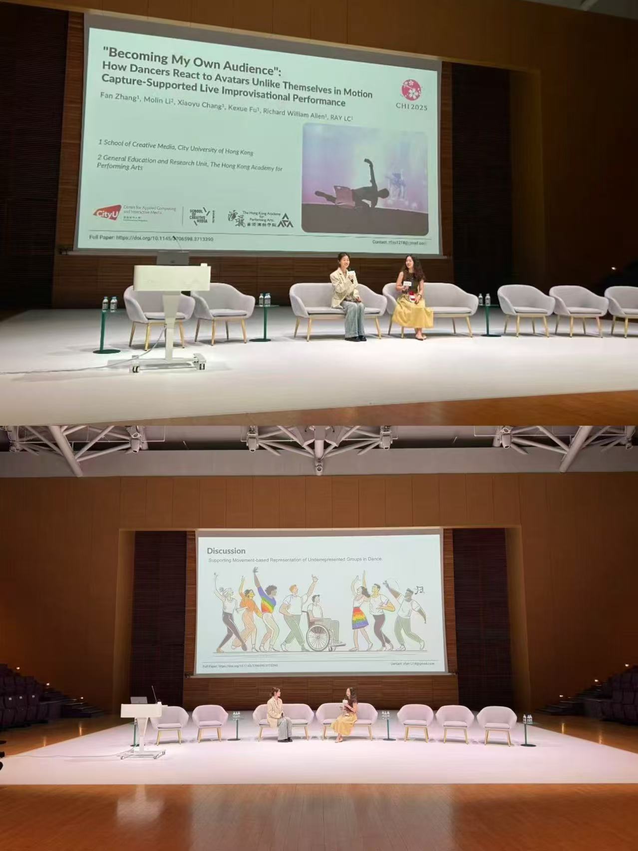 Invited as a presenter and performer at the SWEAT Hong Kong International Dance Workshop Festival 2025 (HKAPA), I shared a completed paper on motion capture and dance, and also introduced a new direction on inclusive community — where a wheelchair dancer and a standing dancer work together in one motion-capture system to improvise. This line of work develops the idea of co-animating a single avatar, advancing our broader inquiry into inclusive communities and technology-mediated performance.